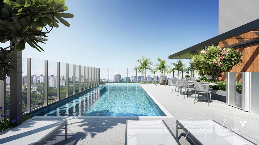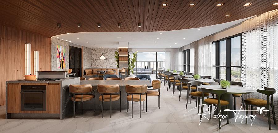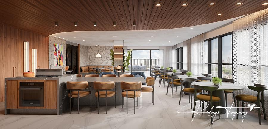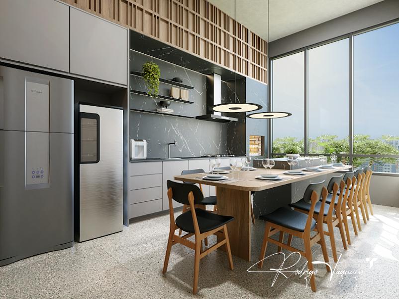 Piscina borda infinita | Spa | Sauna | Academia | Salão gourmet | Salão de jogos | Coworking | Estúdio de gravação | Lavanderia compartilhada | Minimercado | Espaço delivery
