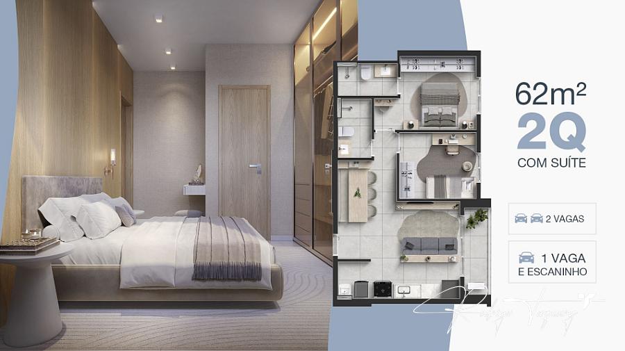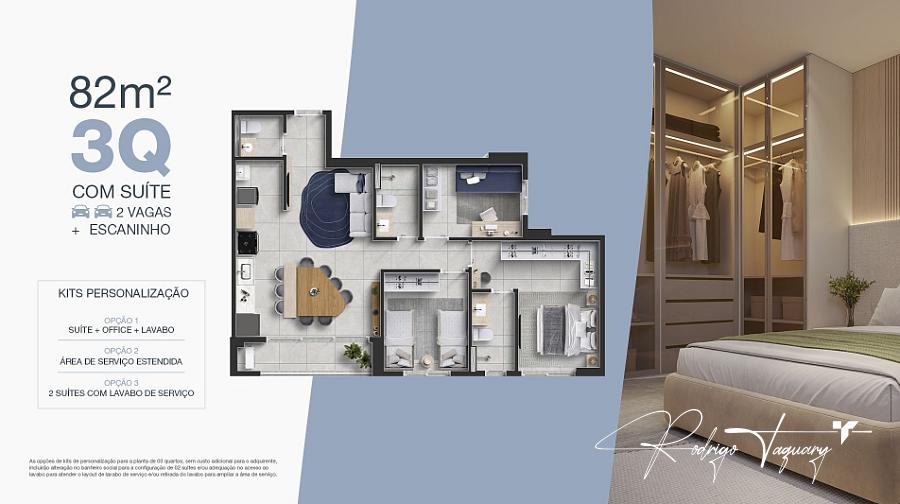 62 a 82 m² | 2 ou 3 quartos | 1 suíte | Lavabo | Escaninho | Espaço office