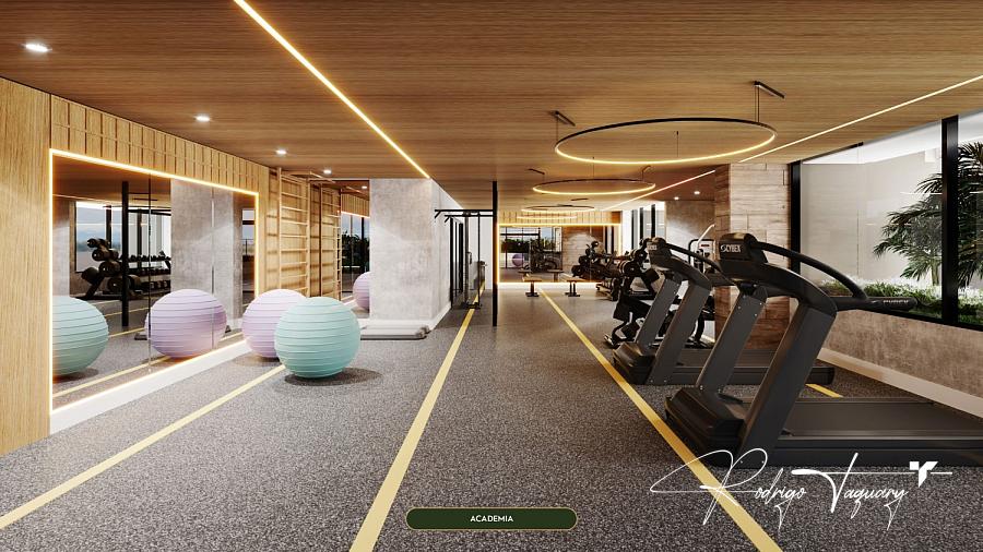 Piscina com raia de 25m, piscina infantil, sauna integrada, salão de festas, 2 áreas gourmet, academia, spa, brinquedoteca, quadra poliesportiva, playground, mini mercado e bicicletário.