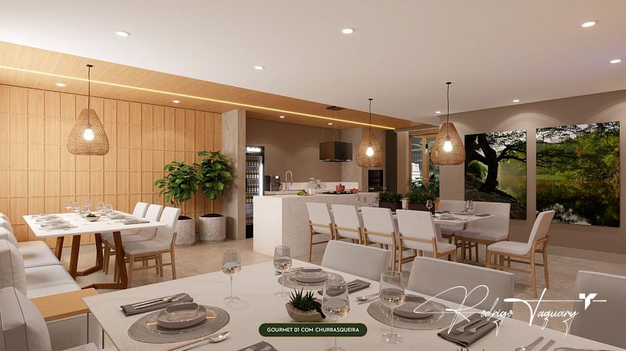 Elevador privativo, varanda com churrasqueira, infraestrutura para ar-condicionado, persianas com previsão de automação, iluminação e ventilação natural.