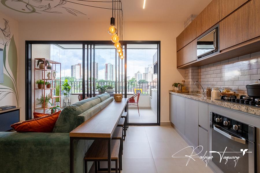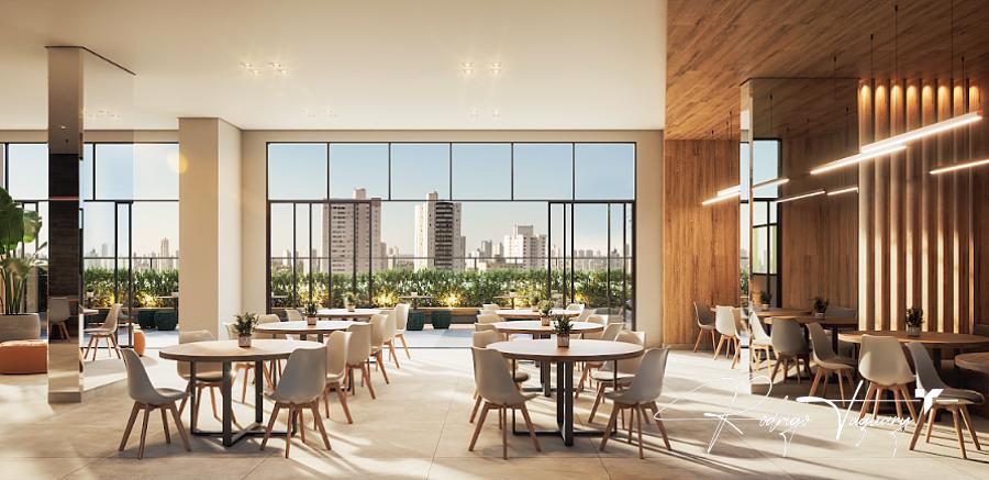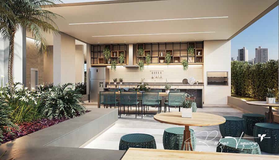 Plantas de 74 a 83 m², com churrasqueira ecológica, fechadura digital, previsão para ar-condicionado e living integrado. Pacotes de personalização permitem closet, office e outras configurações.