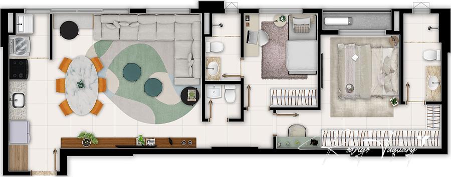 Planta ampla com 2 quartos, ambientes confortáveis e funcionais, projeto moderno e acabamento de alto padrão.