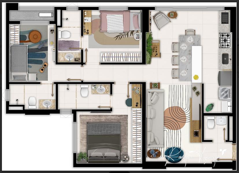 89,51 m² privativos | 3 quartos (1 suíte) | Varanda funcional