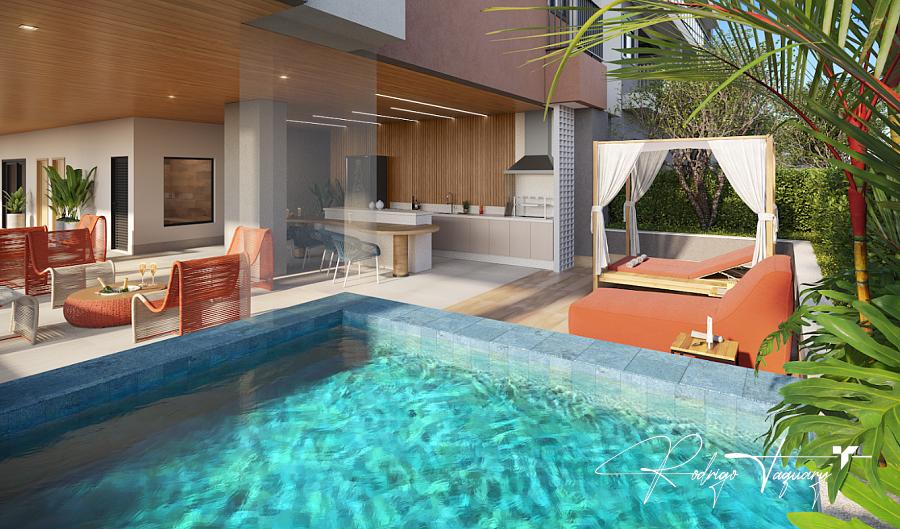 Piscina | Solarium | Quadra | Academia | Gastro Garden com jacuzzi | Sala de jogos | Quiosque gourmet | Playground | Minimercado | Salão de festas