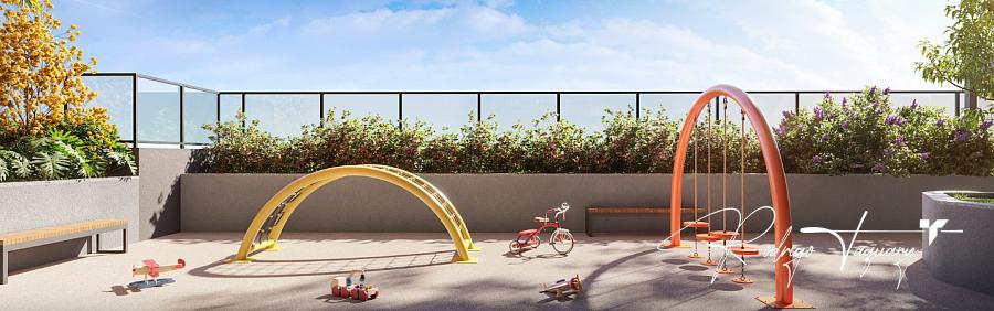 Piscinas com deck molhado, academia equipada, espaço gourmet, brinquedoteca, playground, salão de festas, coworking, spa e terraço coletivo.