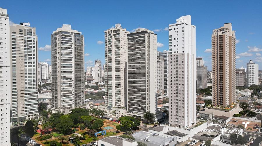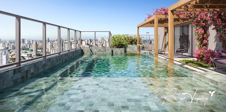 Apartamento de alto padrão no Cinque Terre Residenze, com 109 m², 3 suítes plenas, lavabo, sala ampla integrada à cozinha e varanda com piscina privativa. Projeto da Sousa Andrade, localizado na Rua T-53, em área nobre do Setor Bueno, com acabamento sofisticado e planta funcional.