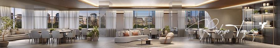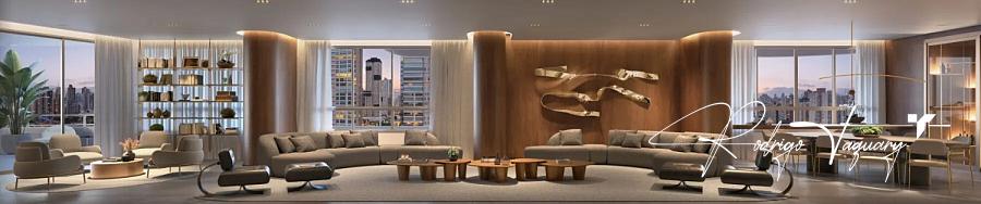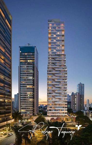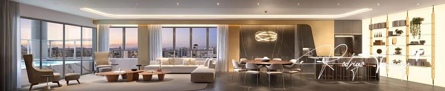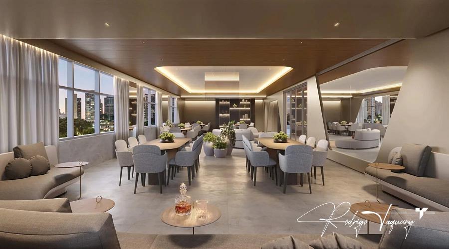 Apartamento à venda no City 23 by Pininfarina, com 538 m², 4 suítes plenas, 6 vagas, piscina privativa e varanda com pé-direito duplo. Unidade de altíssimo padrão em frente à Praça T-23, no ponto mais nobre do Setor Bueno. Um projeto exclusivo assinado pela Pininfarina.