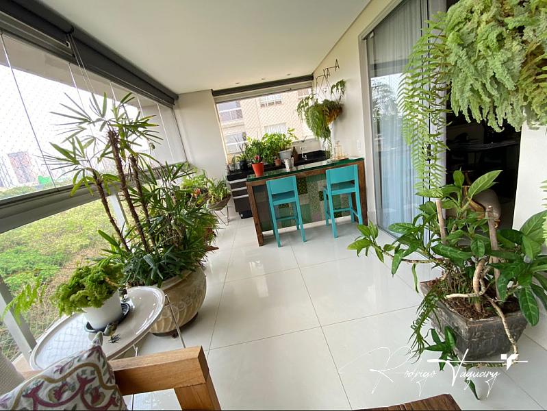 – Varanda gourmet com cortina de vidro e vista para o Parque Areião