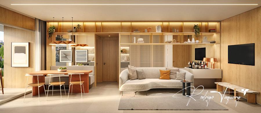 80 m² | 2 suítes | Lavabo | Varanda integrada | Acabamento premium | Tomadas USB | Laje maciça (acústica) | Banheiros com ventilação natural | 1 vaga privativa