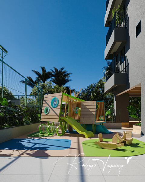 Lazer completo: piscinas adulto e infantil, salão de festas, academia, brinquedoteca, playground e espaço de convivência.