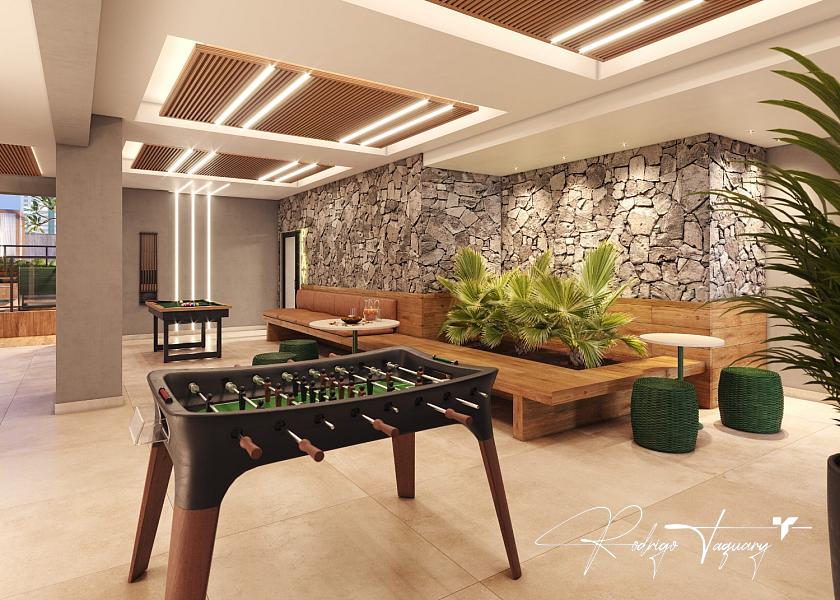 Piscinas adulto e infantil | Sauna | Academia | Quadra de areia | Espaço gourmet | Salão de festas | Brinquedoteca | Varanda de jogos | Coworking | Estúdio de gravação | Espaço bike (Raiza Goulão) | Car wash | Mercado | Espaço delivery