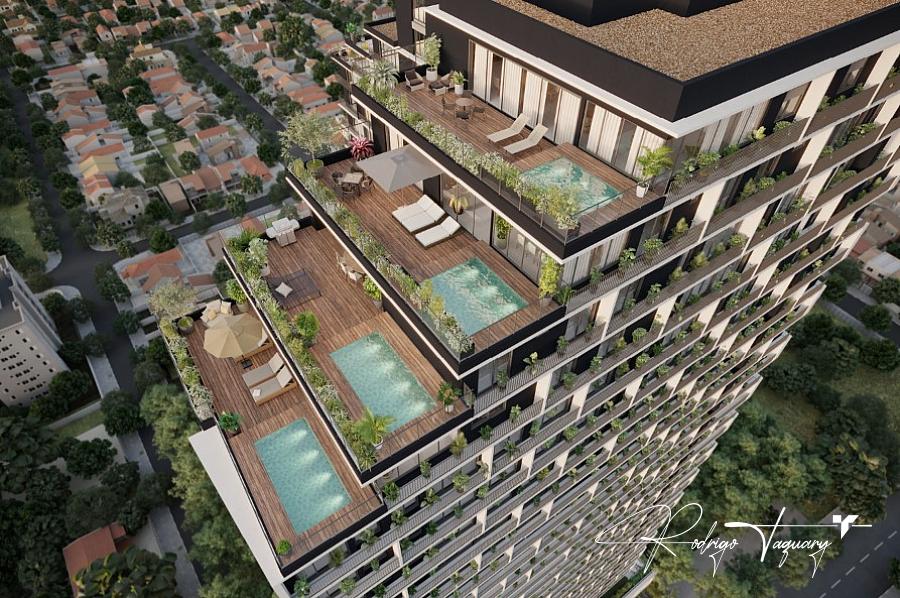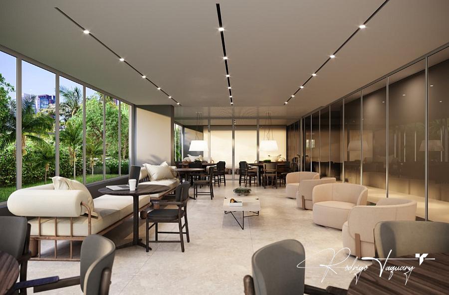 Piscinas adulto e infantil | Academia completa | Sauna | Deck molhado | Salão de festas | Quadra de beach tennis | Espaço gourmet | Lounge | Spa | Áreas de convivência com design autoral