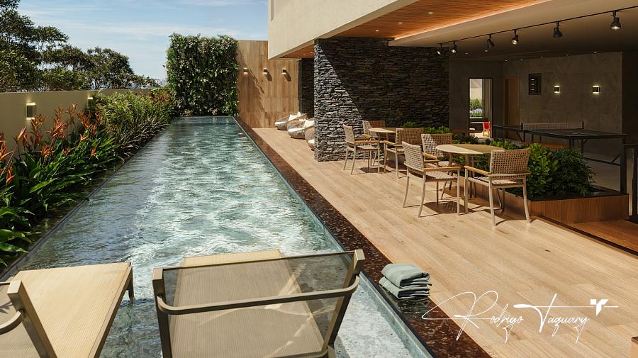 Piscinas adulto e infantil, academia equipada, espaço gourmet, lounge, salão de festas, brinquedoteca, quadra poliesportiva, solarium e segurança 24h.