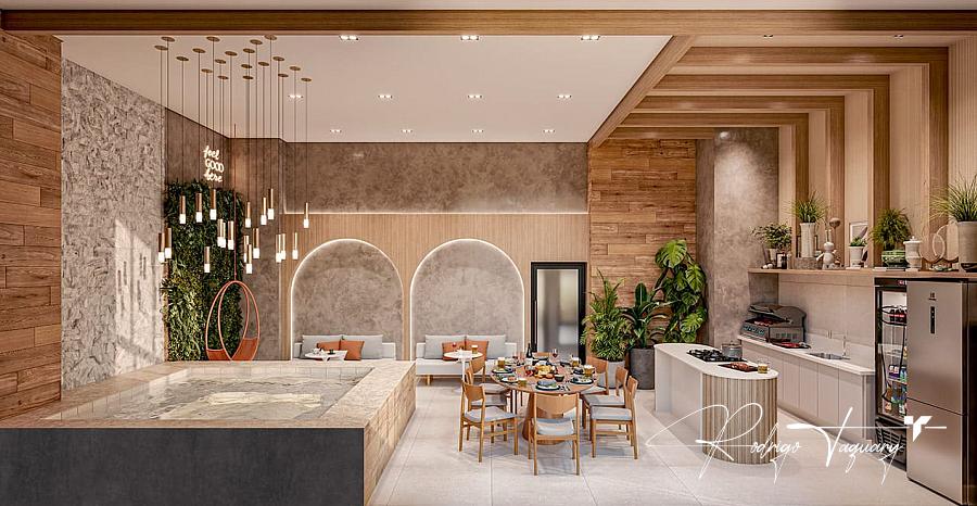 Piscinas | Piscina infantil | Spa | Academia | Pilates | Sauna | Coworking | Espaço gourmet | Salão de festas | Pub | Sala de jogos | Estúdio | Sala de massagem | Playground | Brinquedoteca | Miniquadra | Pet place | Bicicletário | Lavanderia compartilhada | Espaço delivery | Mercado | Café bar | Bar molhado | Piscina com borda infinita | Hall decorado