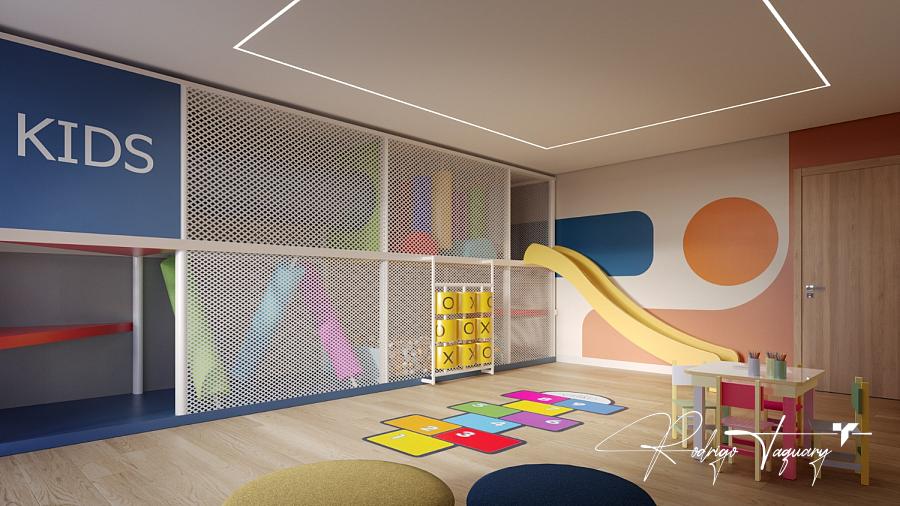 Piscina climatizada | Sauna | Fitness 190 m² | Quadra | Espaços gourmet | Brinquedoteca | Praça de convivência | Piscina infantil | Hall decorado | Lounge | Porte-cochère