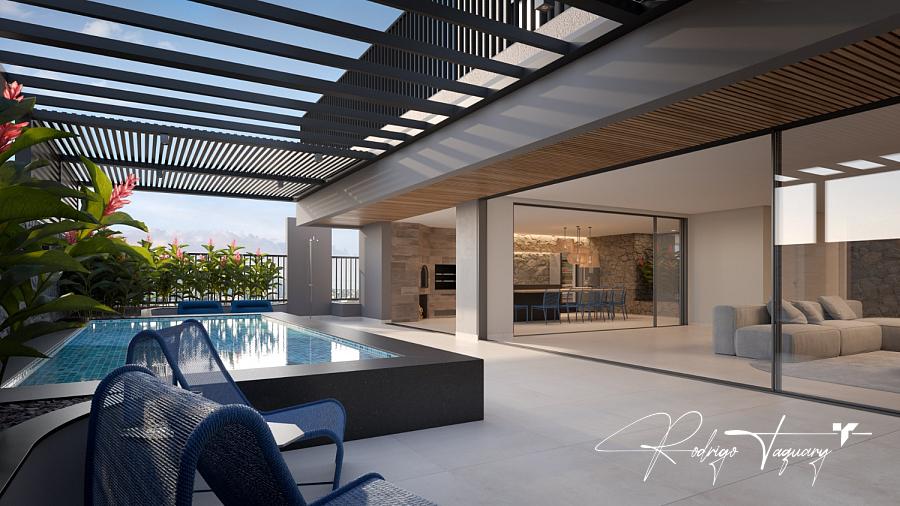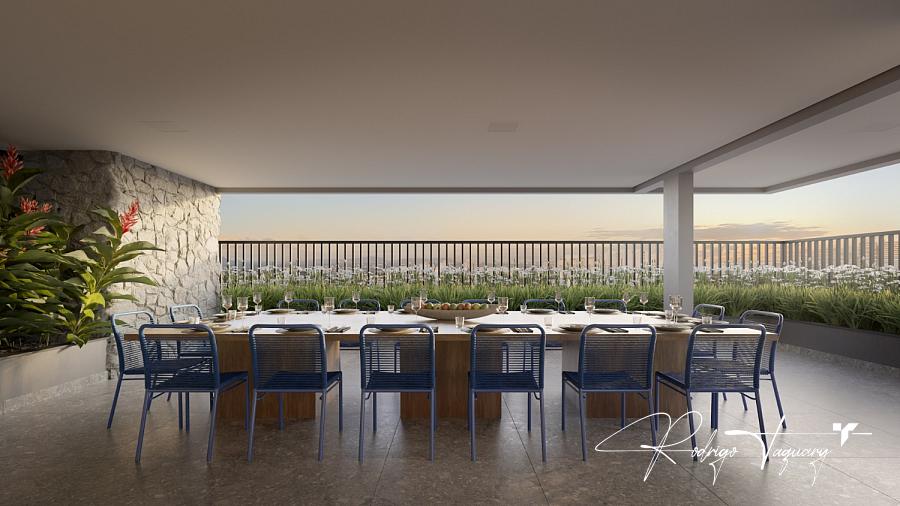 Apartamento à venda no Island Vaca Brava com 122,40 m², 3 suítes, varanda gourmet com churrasqueira a carvão e 2 vagas privativas. Planta ampla, ventilada e integrada, com cozinha gourmet e área de serviço separada.