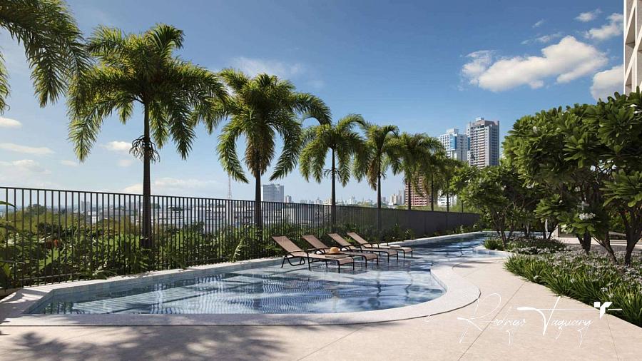 O projeto conta com lazer distribuído em três pavimentos, incluindo academia no rooftop com vista panorâmica, piscina adulto com deck molhado, espaços sociais completos e áreas pensadas para convivência, eventos, bem-estar e atividades em família.