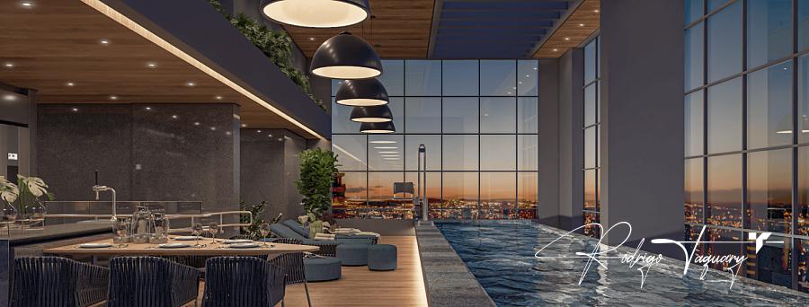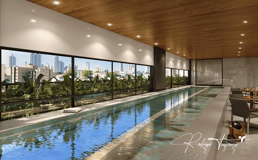 O lazer é um dos seus principais diferenciais: piscina com borda infinita, piscinas cobertas climatizadas, complexo fitness, sauna, spa relax, salões de festas, ateliês, coworking, espaço beauty e rooftop com vista privilegiada para a região.