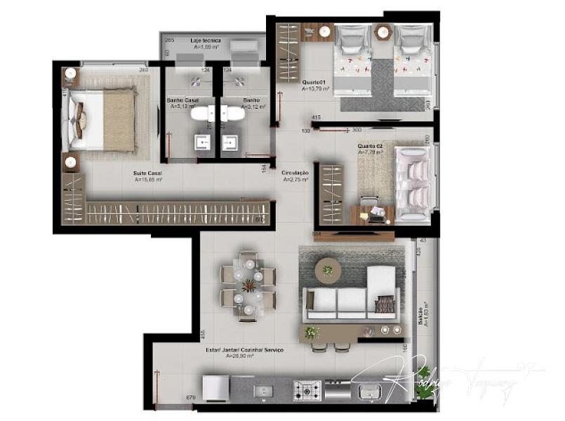 85 m² | 3 quartos (1 suíte) | Varanda | 2 vagas | Plantas flexíveis | Arquitetura de alto padrão | Acabamentos Elmo