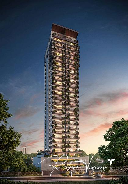 Plantas amplas, acabamento de alto padrão, torre única, apenas 4 apartamentos por andar, ponto de recarga para carro elétrico.