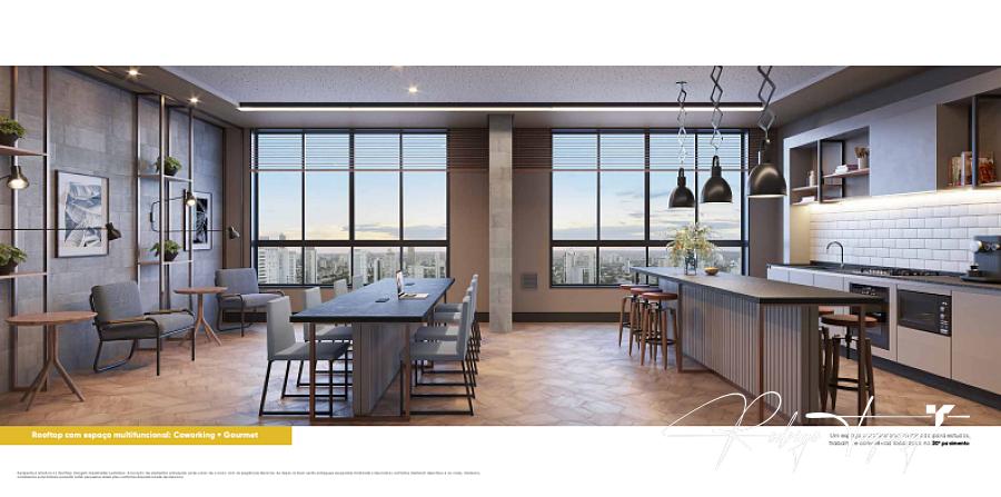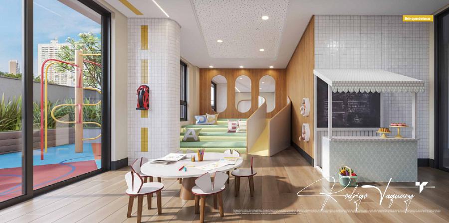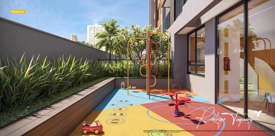Rooftop com coworking e gourmet | Mezanino verde | Espaço fitness | Streetball | Playground | Quadra | Lounge externo | Piscina | Espaço delivery | Bike station | Brinquedoteca | Salão de festas