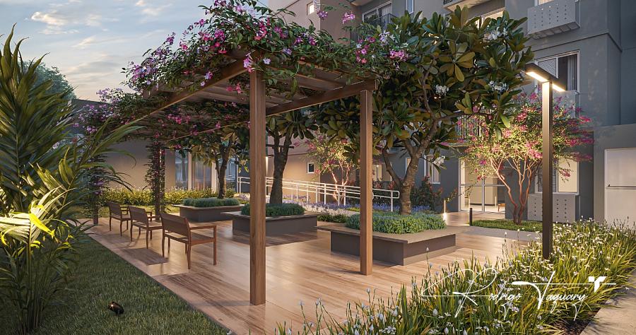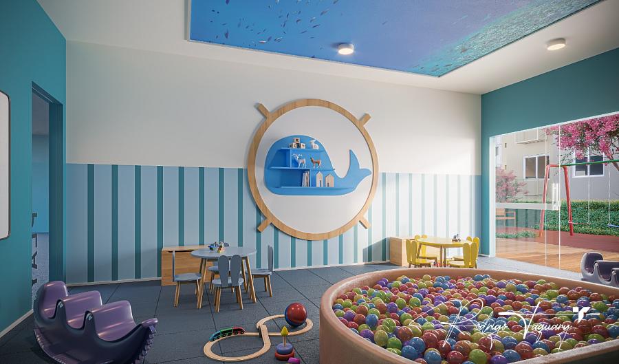 Piscinas adulto e infantil, academia equipada, espaço gourmet, brinquedoteca, playground, salão de festas e praça de convivência. Condomínio completo com segurança e lazer.