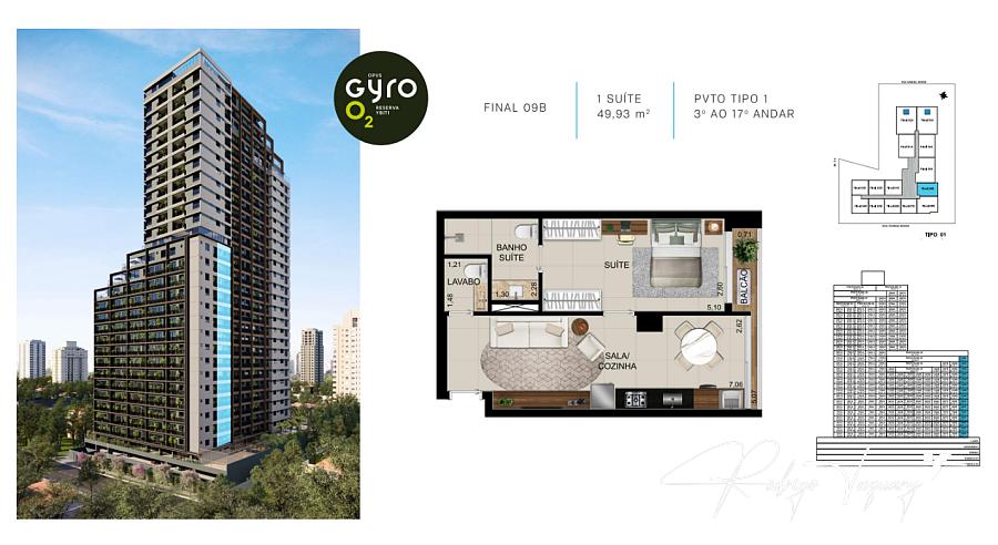 O Gyro O2 integra arquitetura contemporânea, acabamentos de alto padrão e tecnologia: fechadura digital, assistente virtual por comando de voz e kit multimídia. Localização estratégica em região planejada, com mobilidade, segurança e forte potencial de valorização.