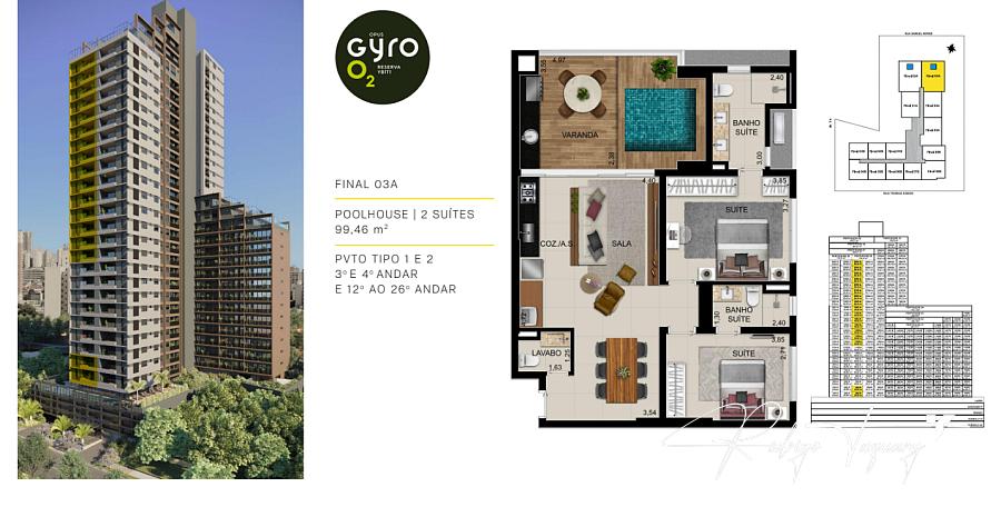 Apartamento tipo poolhouse à venda no Opus Gyro O2 Reserva Ybiti, com 99 m², 2 suítes, piscina privativa, varanda gourmet e 1 vaga de garagem. Localizado na Reserva Ybiti, no Setor Serrinha, o empreendimento da Opus entrega design moderno, tecnologia integrada e a maior área de lazer já criada na linha Gyro, com 1.800 m² de espaços completos. Entrega prevista para novembro de 2025.