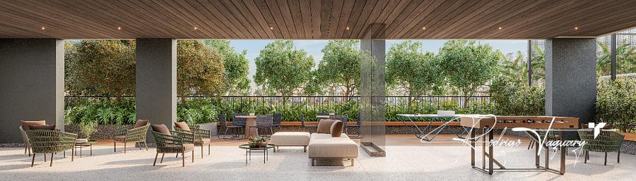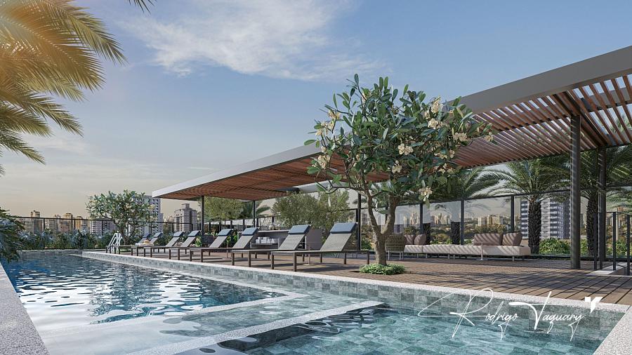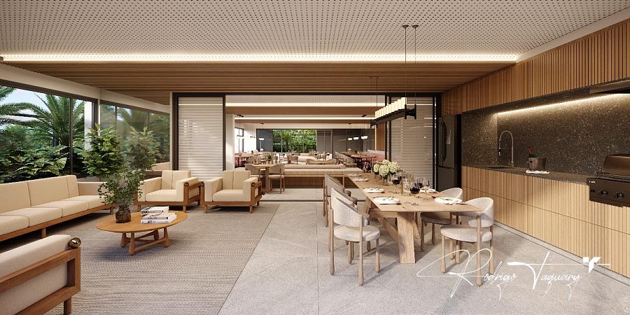 O apartamento apresenta planta inteligente, varanda com ventilação cruzada, laje técnica, living integrado à cozinha e acabamentos premium.