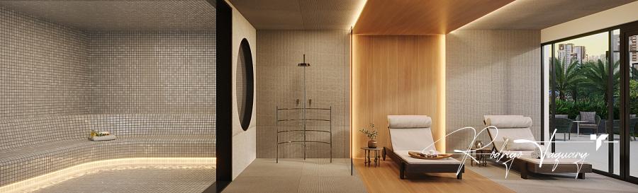 Piscina com raia | Spa | Academia Opus Gym (200 m²) | Salão de festas | Espaço gourmet | Salão de jogos | Brinquedoteca | Quadra | Pet place | Sauna | Hall com obra exclusiva de Marcelo Solá