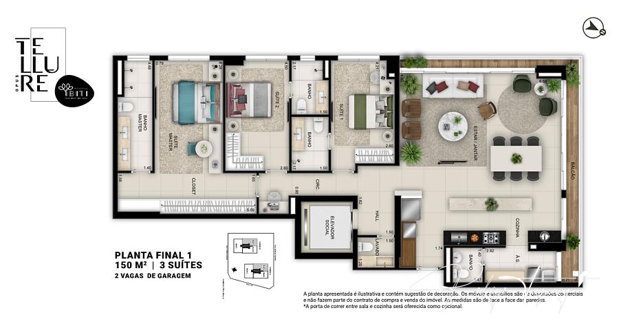 Apartamento à venda no Opus Tellure, no Setor Serrinha, com 150,89 m², 3 suítes plenas, sala ampla integrada à varanda, lavabo, cozinha funcional e elevador privativo. Projeto de alto padrão, com acabamento sofisticado, planta bem distribuída e localização estratégica entre os setores Marista e Bueno.
