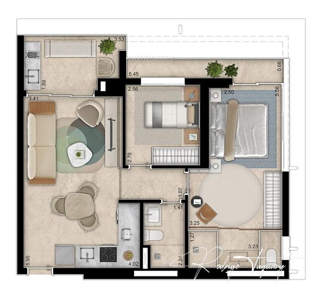 73,16 m² | 2 quartos (1 suíte) | Amplo living integrado | Varanda funcional | Acabamento diferenciado | Infraestrutura moderna | 1 vaga privativa