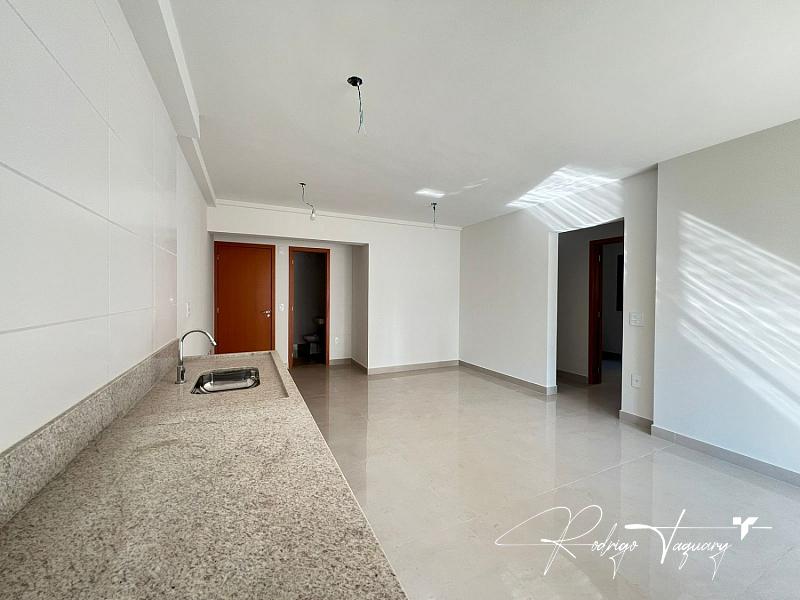 Apartamento com 90,99 m² à venda no Ritmo Bueno, torre verticalizada acima da T-63, no Setor Bueno. Planta com 3 suítes (2 americanas), lavabo, sala integrada à cozinha americana, varanda e área de serviço ventilada. Unidade 401 com 2 vagas de garagem (50/50A). Valor: R$ 720.000 | Condomínio: R$ 435,00.