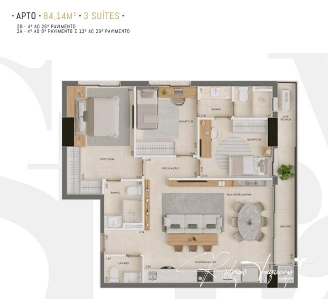 Apartamento à venda no Setor Marista, no Storya Casa Versátil, com 84,14 m², 3 suítes, 1 vaga privativa e churrasqueira a gás. Empreendimento de alto padrão da Brasal Incorporações, com entrega prevista para março de 2026, direto com a construtora.