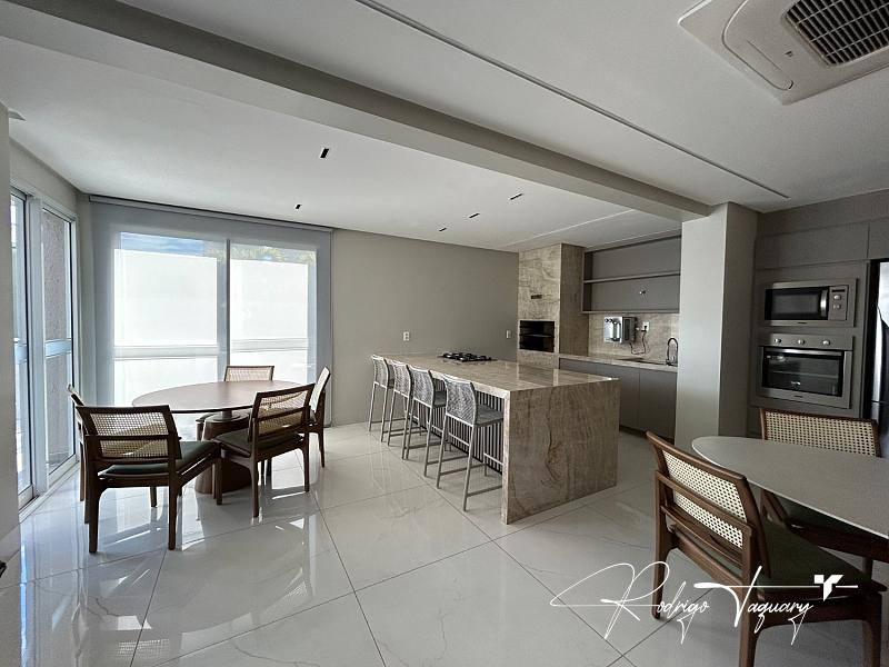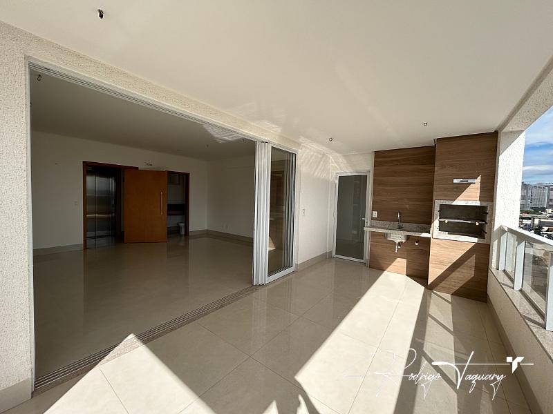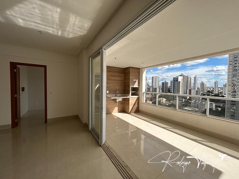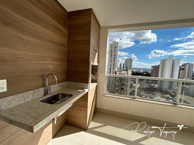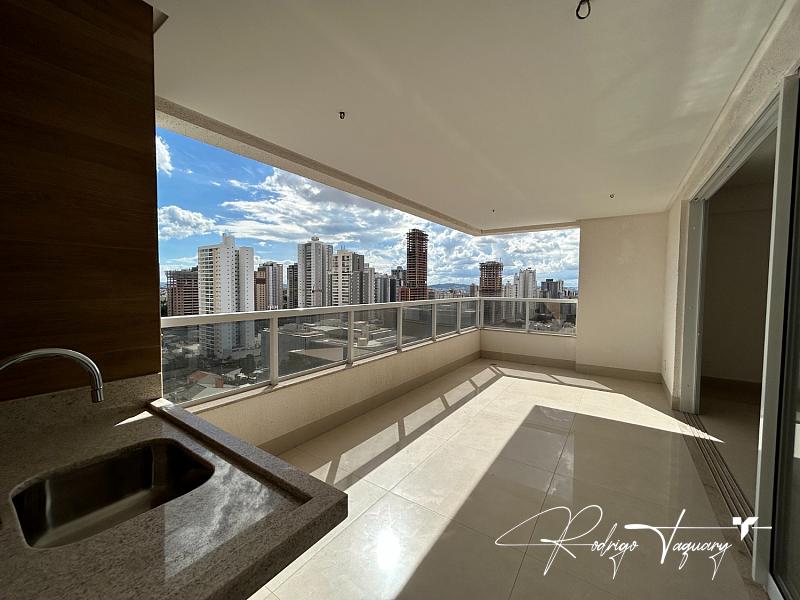 Apartamento à venda no Supreme Residence, com 155 m², 3 suítes (master com closet), hall privativo e 3 vagas na Rua T-28, Setor Bueno. Planta ampla com living em 2 ambientes, lavabo, roupeiro, cozinha americana integrada, varanda gourmet com churrasqueira a carvão e escaninho. Unidade completa em armários, iluminação e automação em sala, cozinha e suíte master.