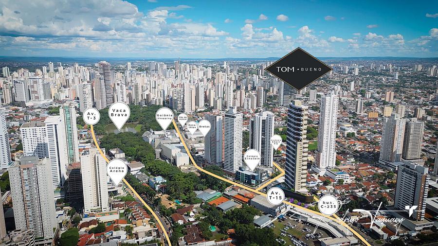 Apartamento à venda no Tom Bueno, com 117 m², 3 suítes e 2 vagas privativas no Setor Bueno. Planta moderna com varandas amplas, integração total dos ambientes e possibilidade de personalização. Localização exclusiva: única torre da quadra, com vista definitiva para o Parque Vaca Brava. Previsão de entrega: junho de 2027.