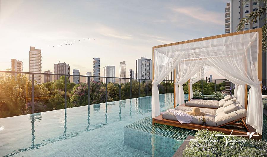 Piscina com borda infinita | Piscina adulto e infantil | Academia com 195 m² | Floresta privativa | Spa | Salão de festas | Espaço gourmet | Sala de jogos | Lounge | Churrasqueiras | Pet place | Vaga para carro elétrico | Bicicletário | Playground | Deck molhado | Hall decorado | Espaço delivery | Porte-cochère
