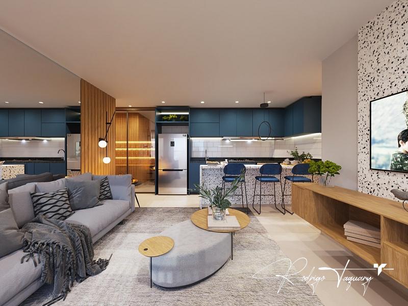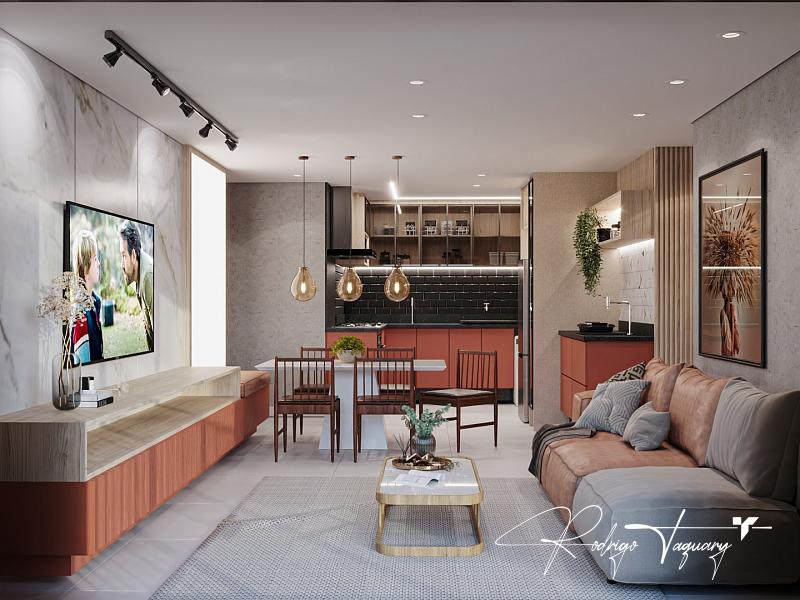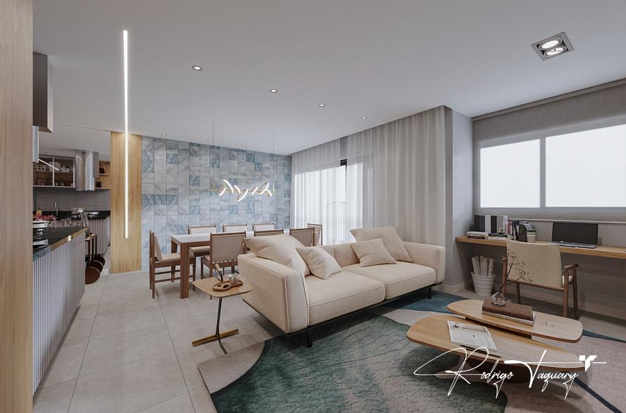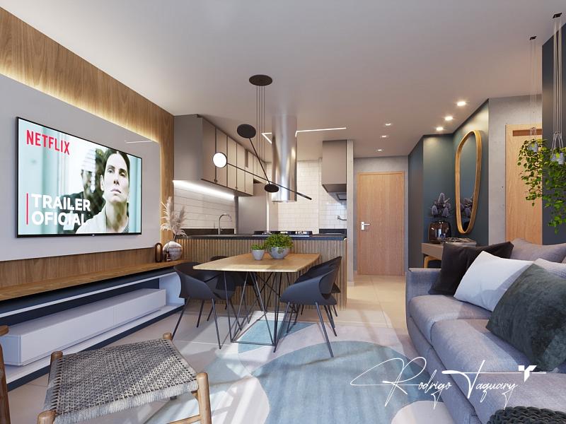 67,37 m² privativos | 2 quartos | Ambientes integrados | Acabamento de alto padrão | Planta bem distribuída