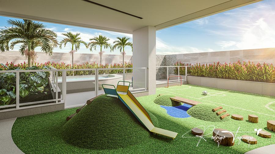 Lazer e infraestrutura: piscina adulto, academia equipada, brinquedoteca, playground, espaço gourmet, bar, salão de festas e terraço coletivo.