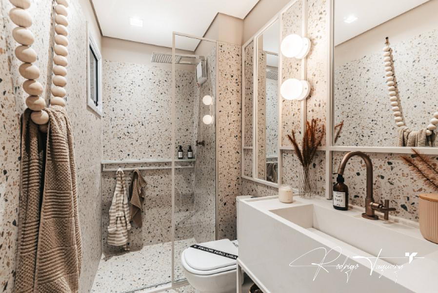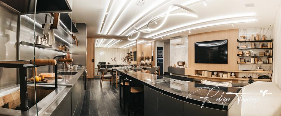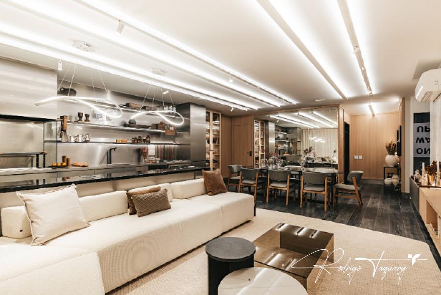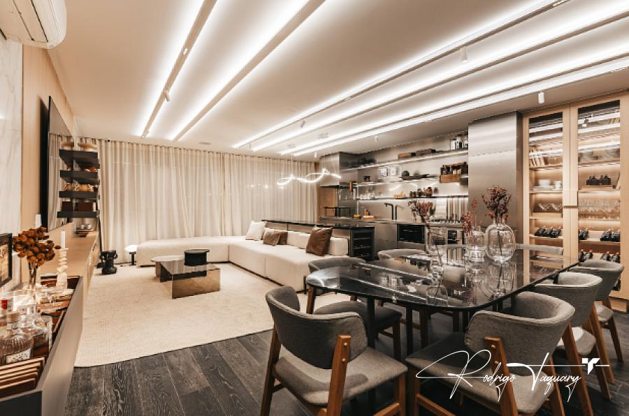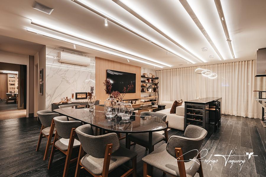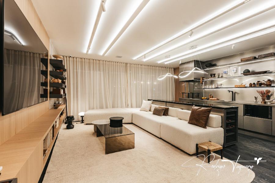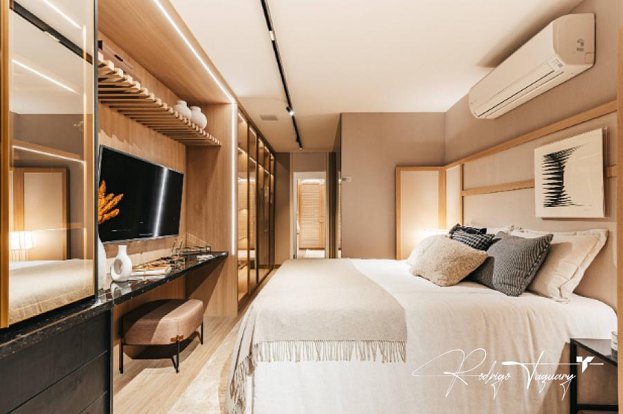 A fachada contemporânea combina elementos vazados, iluminação em LED e paisagismo acolhedor. Já o lazer foi planejado para quem busca conforto e conveniência, com piscina aquecida, espaço gourmet, coworking e uma academia completa de 140 m².