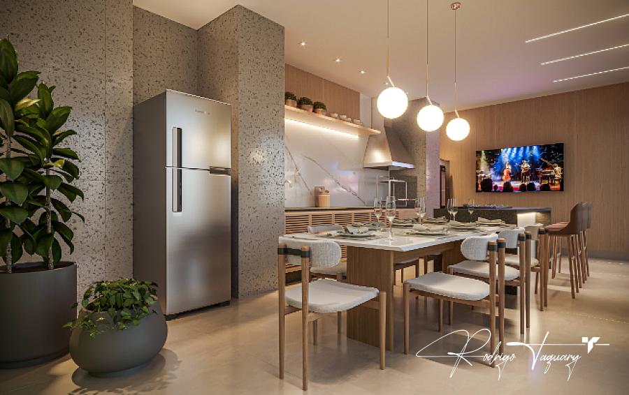 132 m² | 3 suítes | 2 vagas | Varanda com churrasqueira a carvão | Cozinha ampla | Piso porcelanato polido | Venezianas integradas | Fechadura digital | Ambientes integrados | Acabamentos contemporâneos | Projeto EBM de alto padrão
