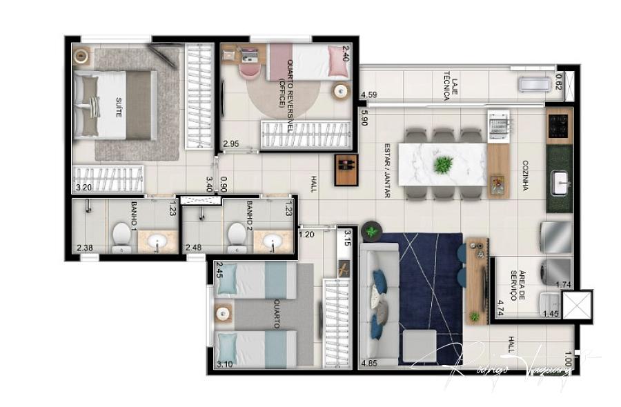 Apartamento no Jardim América, próximo ao Parque Vaca Brava e com fácil acesso a serviços e comércios. Unidades de 76 m² e 86 m² com 2 ou 3 quartos, além de lazer completo e localização estratégica. Detalhes do Imóvel