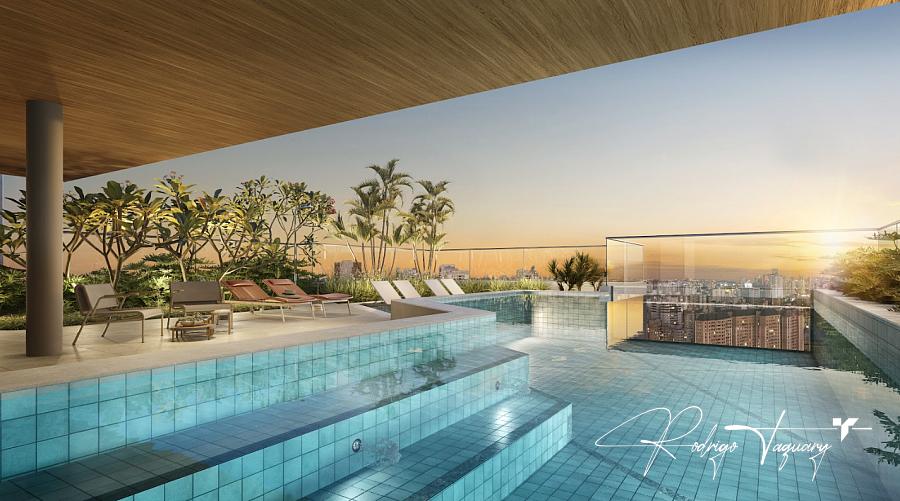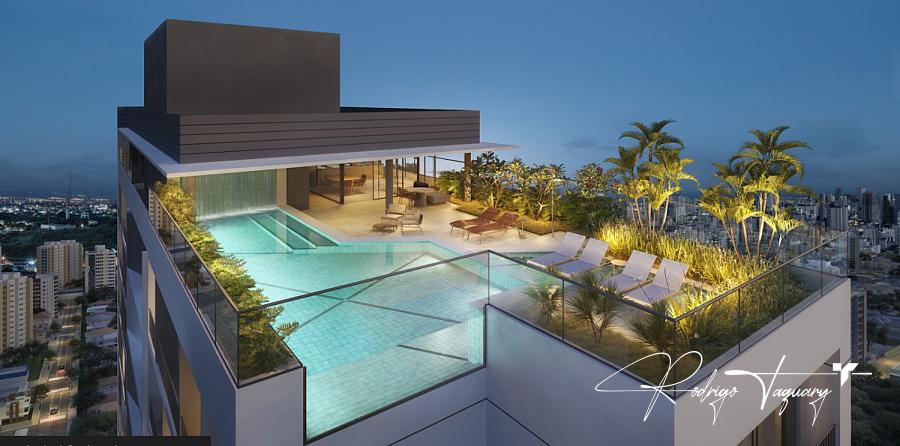 Rooftop wellness | Piscina com borda transparente | Academia 122 m² | Spa | Sauna | Deck molhado | Churrasqueira gourmet | Áreas de convivência | Laje técnica