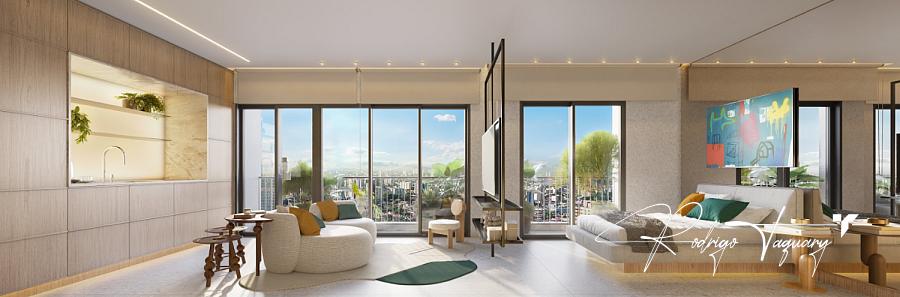 Projeto assinado por Bretones Arquitetura, com interiores de Leo Romano e paisagismo de Benedito Abbud. O Ybiti Home oferece arquitetura contemporânea, ambientes funcionais e áreas comuns sofisticadas, com foco em bem-estar e conectividade.