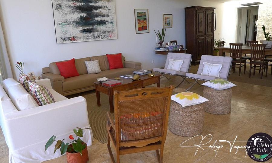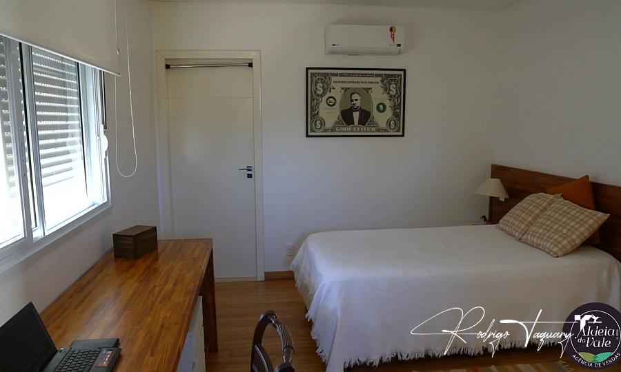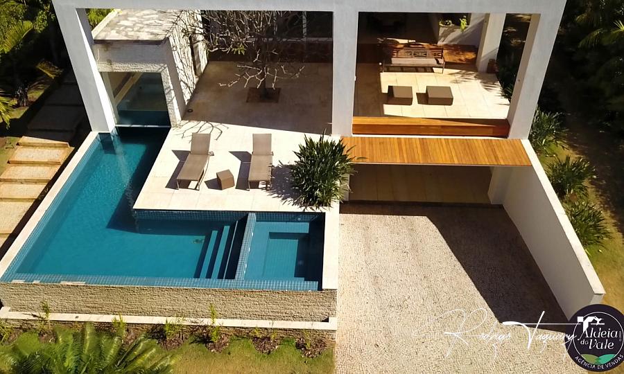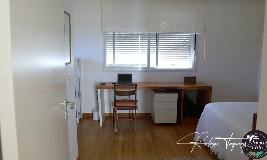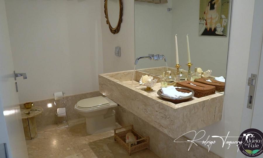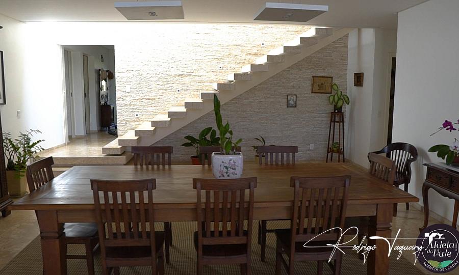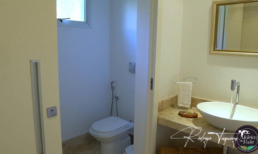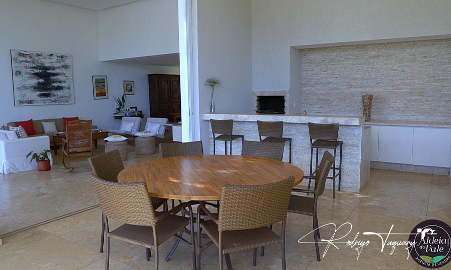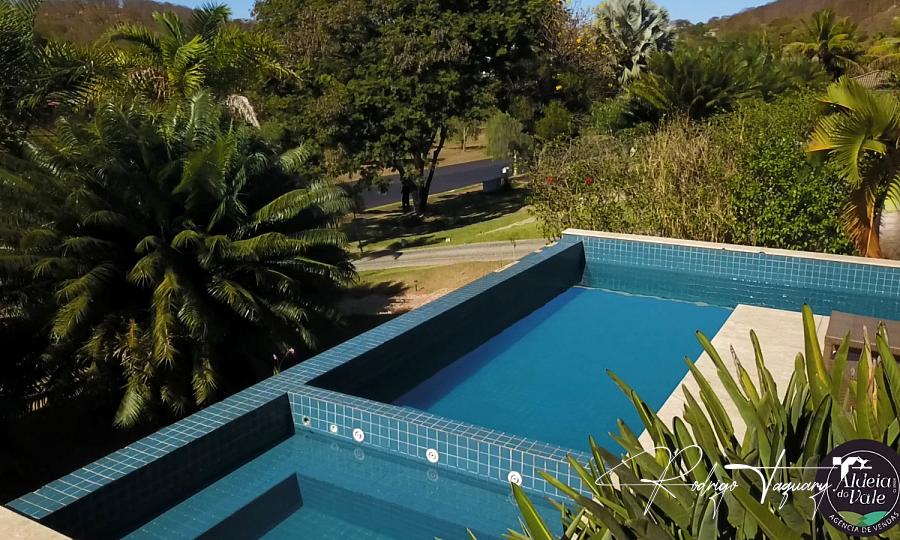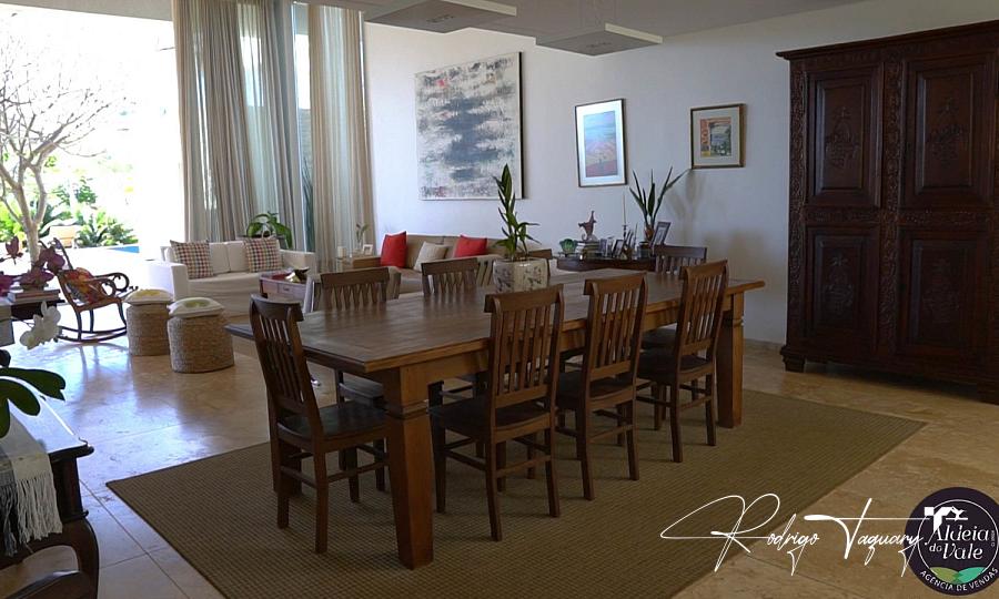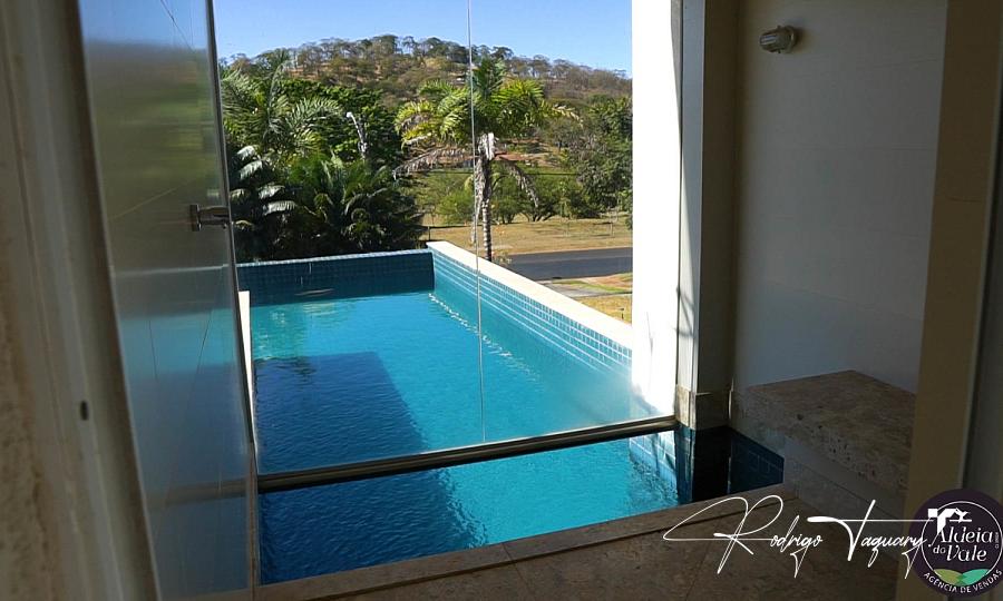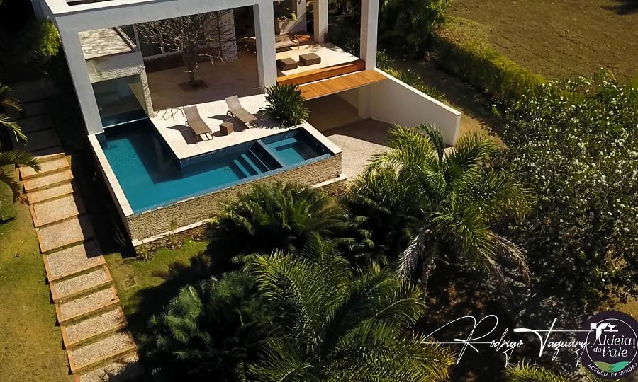 Sobrado de alto padrão à venda no Aldeia do Vale, com vista definitiva para o lago principal da hípica. Projeto elegante e integrado, com sala de estar, jantar e lazer em perfeita harmonia, além de ambientes amplos e naturalmente iluminados. No piso superior, 4 suítes plenas, sendo a máster com closet, varanda aconchegante e espaço íntimo. No térreo, escritório com entrada independente (reversível para suíte) e home com varanda.