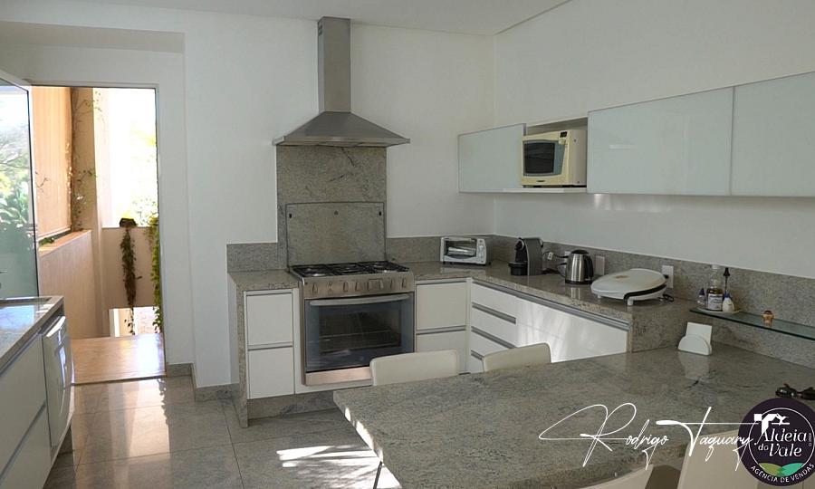 – Cozinha e área de serviço com armários planejados e piso em granito