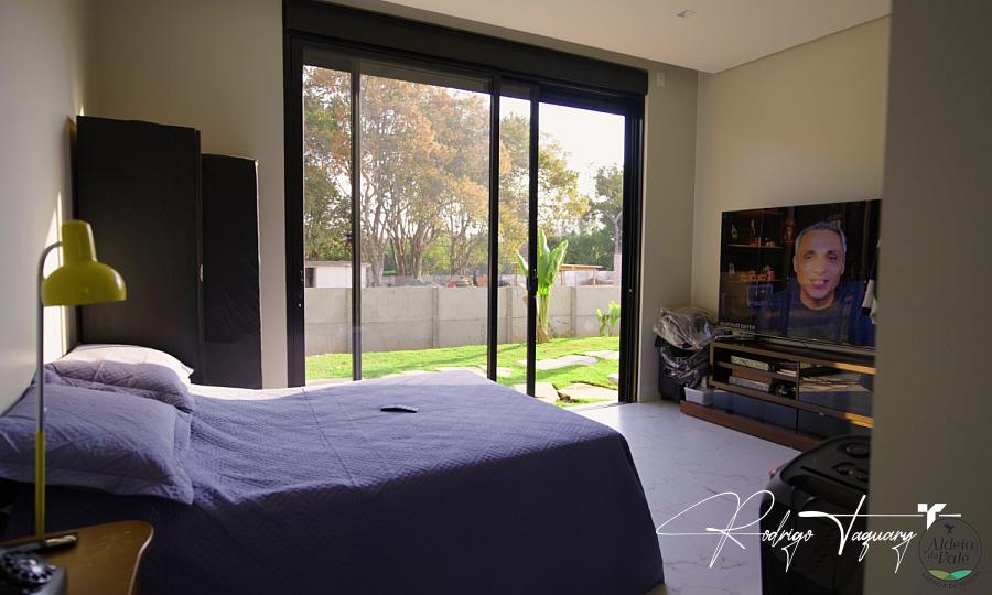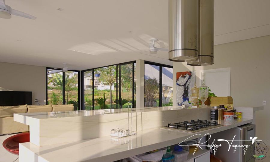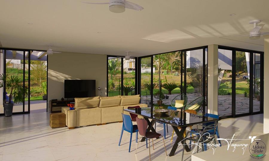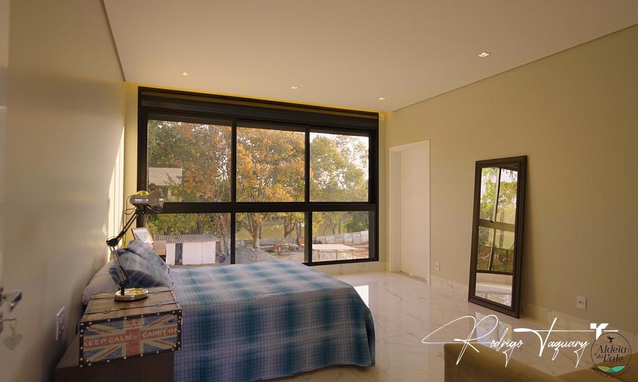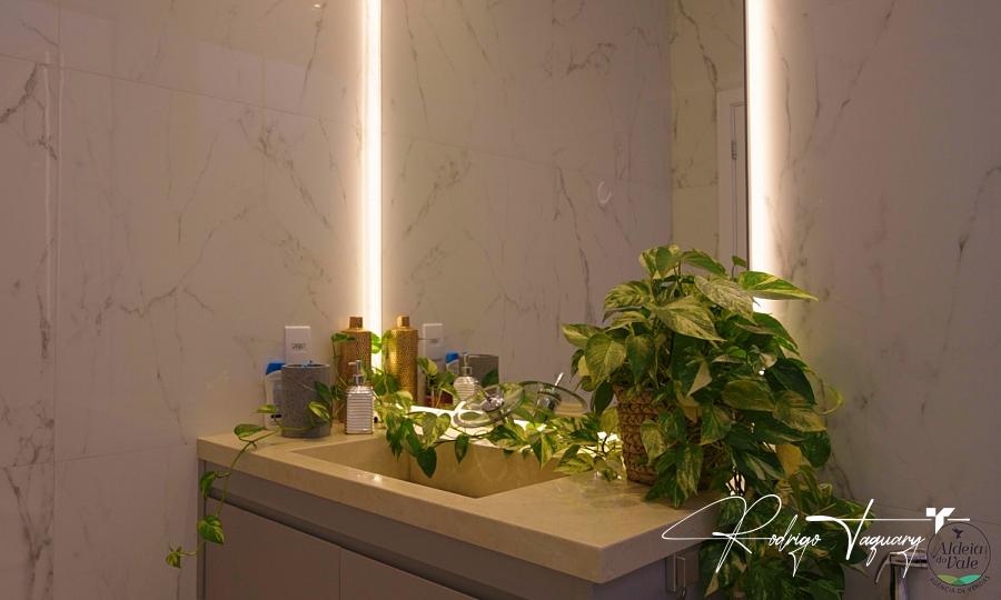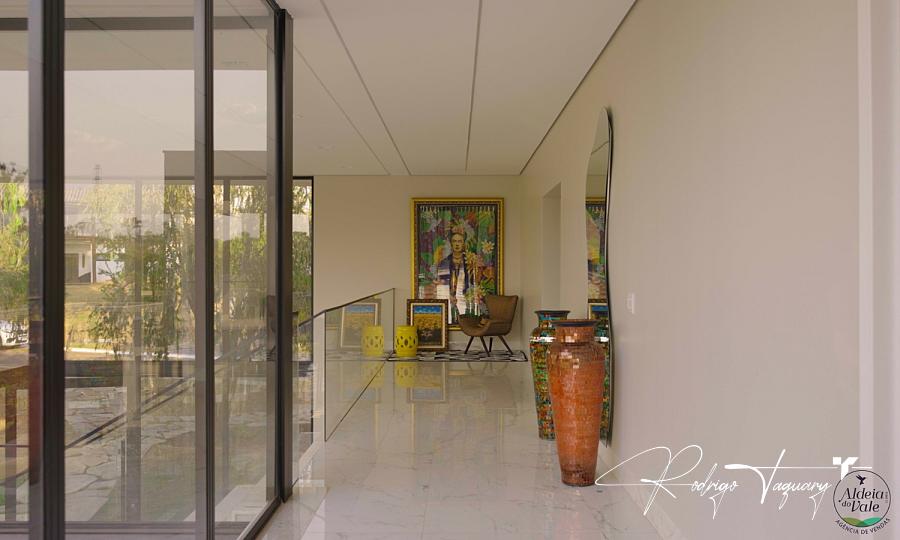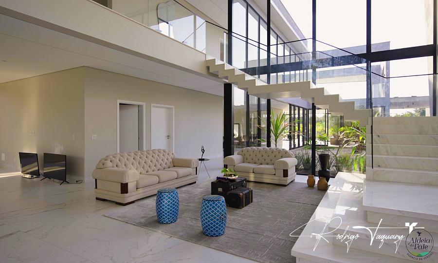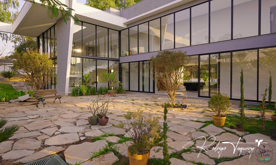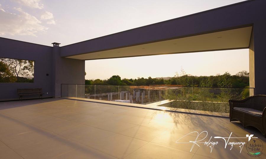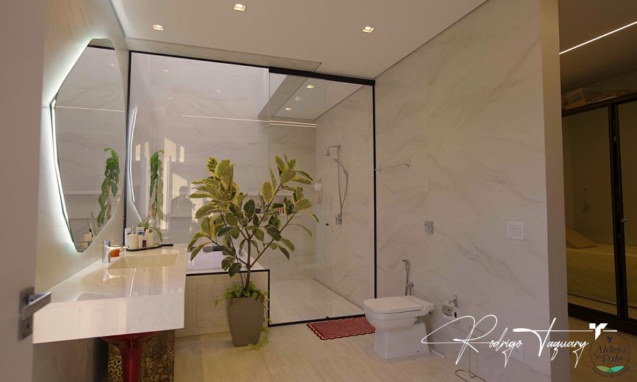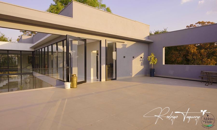 Sobrado exclusivo no Aldeia do Vale, com fundo de lago e projeto assinado pela LF Arquitetura, que valoriza integração e contato com a natureza. No térreo, sala de estar, home TV, lavabo, 1 suíte, espaço de jogos e praça interna com paisagismo. Cozinha e área gourmet com churrasqueira, varanda ampla e integração à piscina aquecida com raia, prainha, hidromassagem, fireplace, deck e pomar à beira do lago.