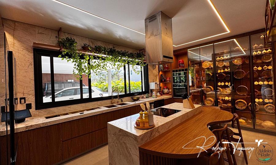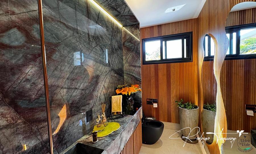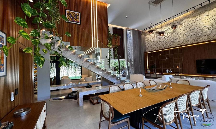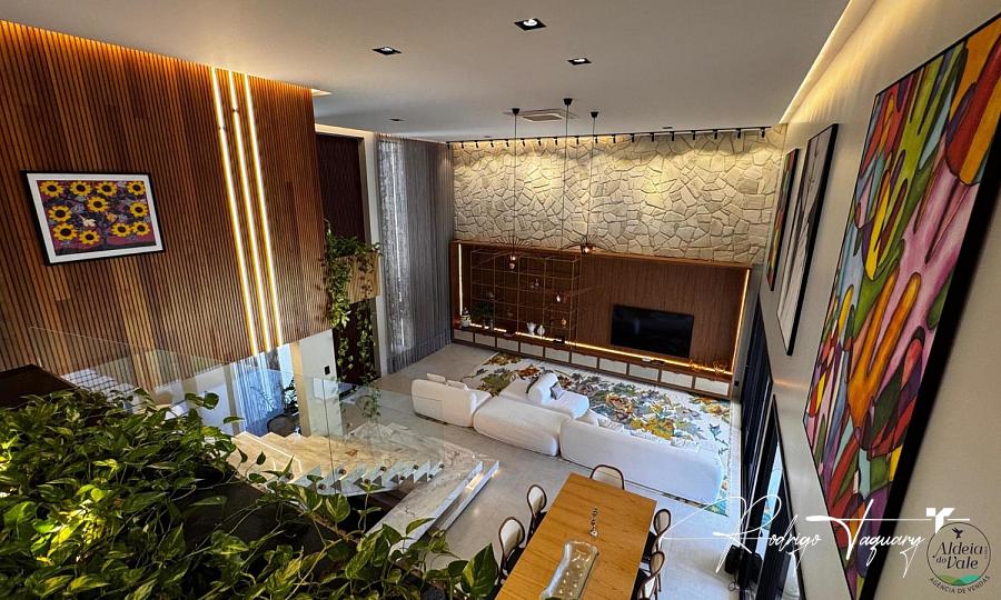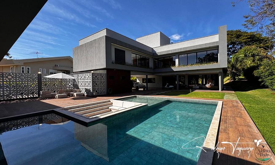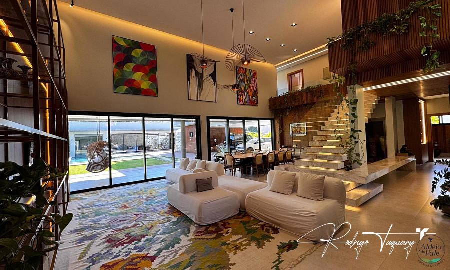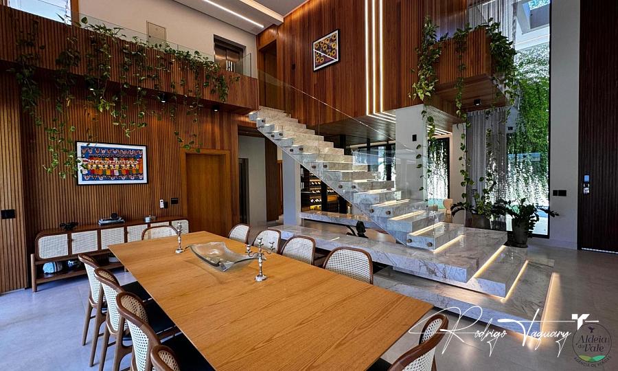 Sobrado exclusivo no Aldeia do Vale, com projeto imponente e integração total dos ambientes. São 6 suítes plenas, incluindo uma no térreo e uma máster ampla com closet e hidromassagem. Destaques para o pé-direito duplo, adega climatizada, sótão multiuso, academia e hall com elevador, unindo sofisticação, funcionalidade e conforto em cada detalhe.