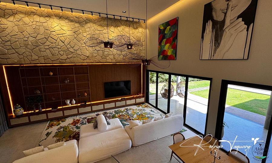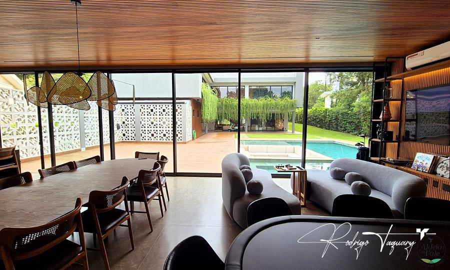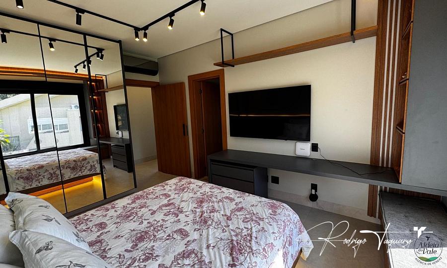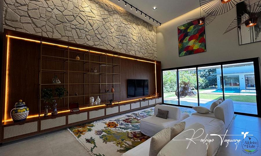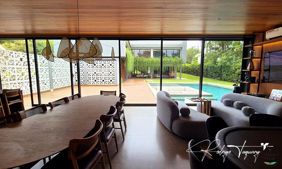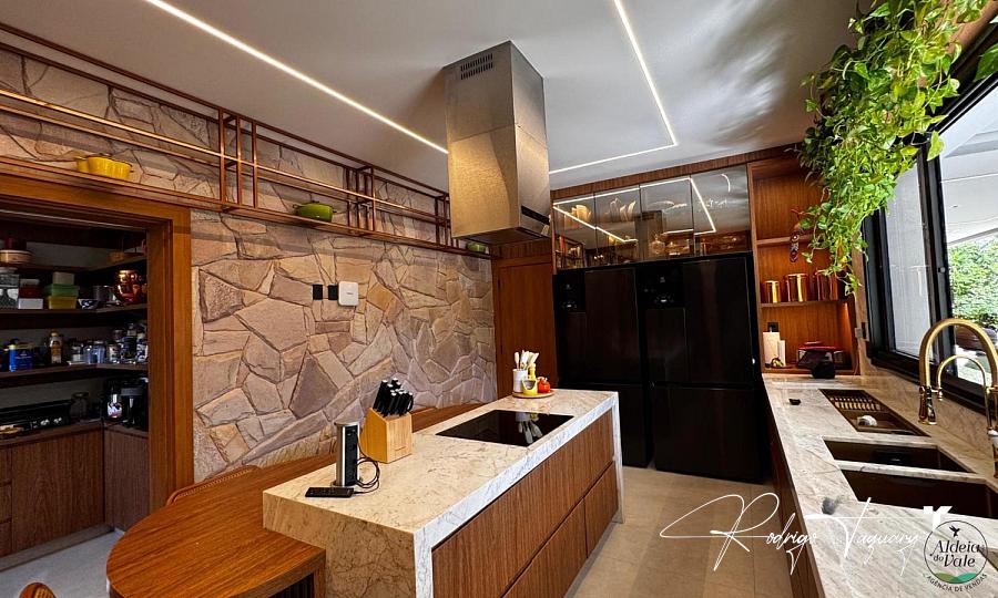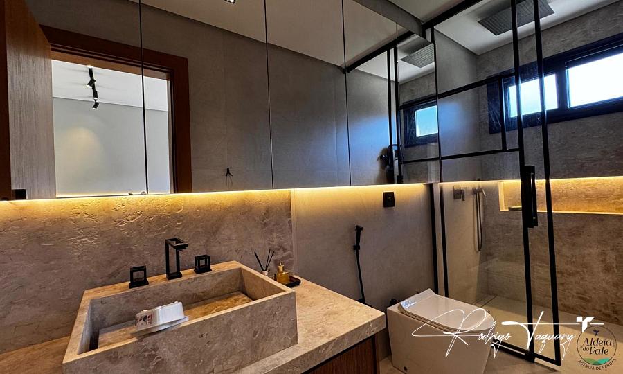 Sobrado exclusivo no Aldeia do Vale, com projeto imponente e integração total dos ambientes. São 6 suítes plenas, incluindo uma no térreo e uma máster ampla com closet e hidromassagem. Destaques para o pé-direito duplo, adega climatizada, sótão multiuso, academia e hall com elevador, unindo sofisticação, funcionalidade e conforto em cada detalhe.