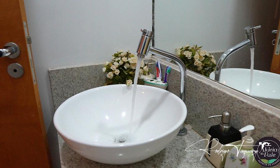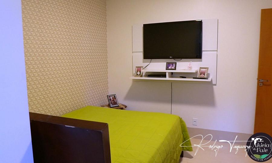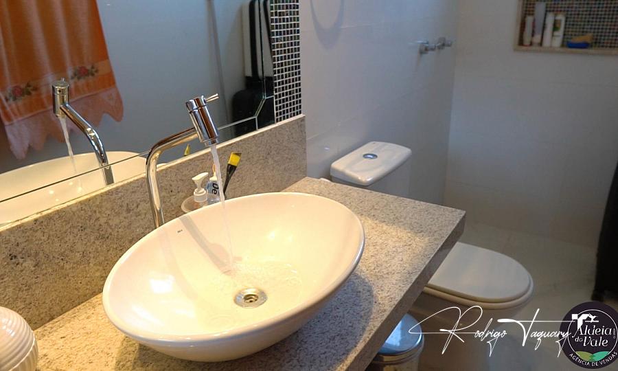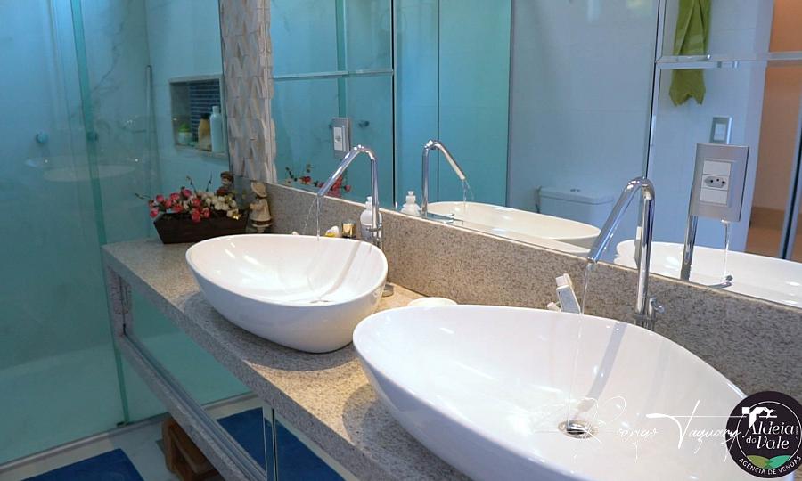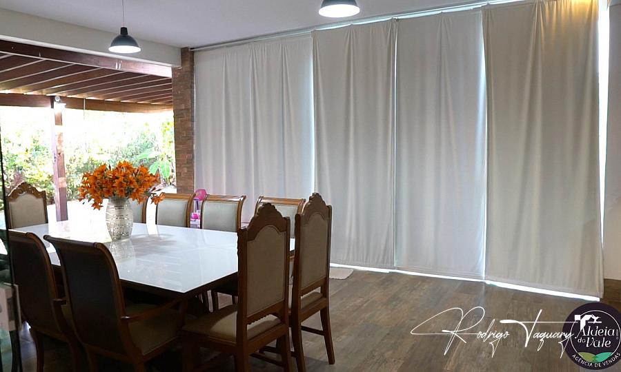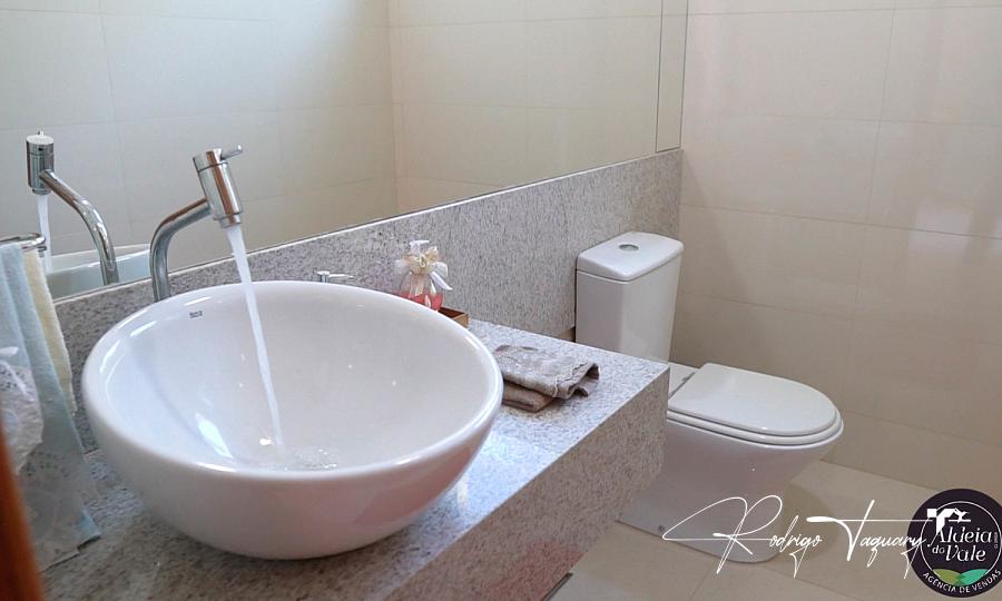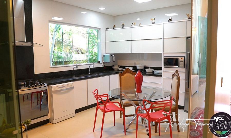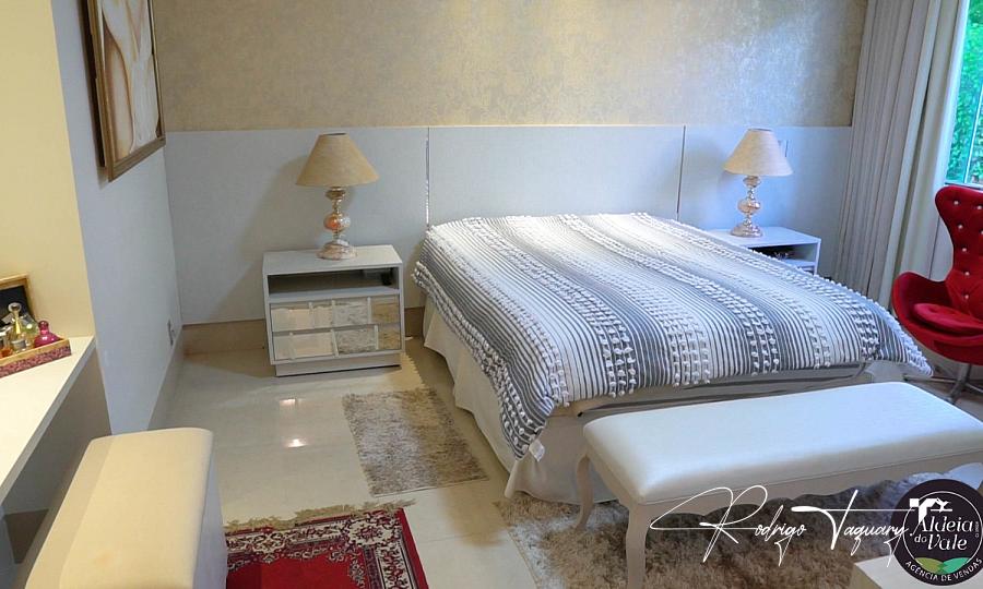 Casa térrea elevada no Aldeia do Vale, com vista definitiva para o fundo do vale e projeto que valoriza integração, conforto e privacidade. São 4 suítes plenas com armários, incluindo a máster com closet e hidromassagem. Sala com pé-direito elevado e dois ambientes integrados à varanda, escritório privativo, lavabo, cozinha funcional e área de serviço independente. Piso em porcelanato Porto Ferreira 90x90 cm.